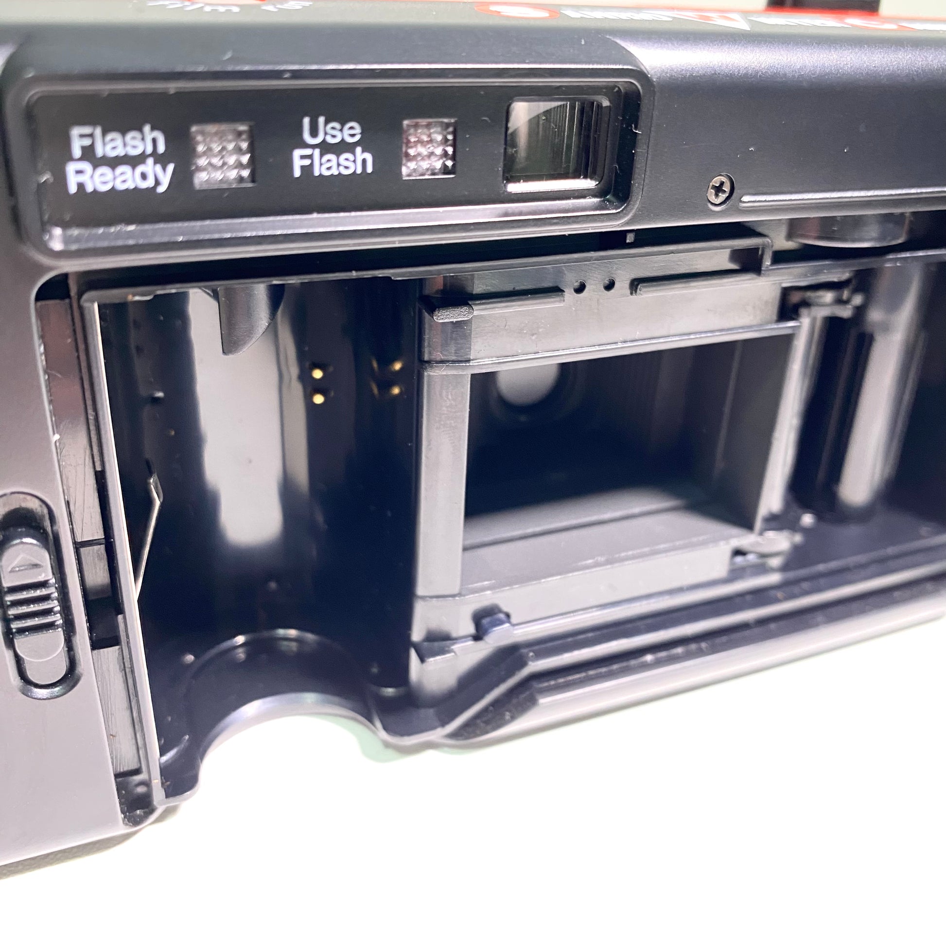 When batteries were inserted, the power-on sound was confirmed, however film operation could not be tested due to the absence of film.